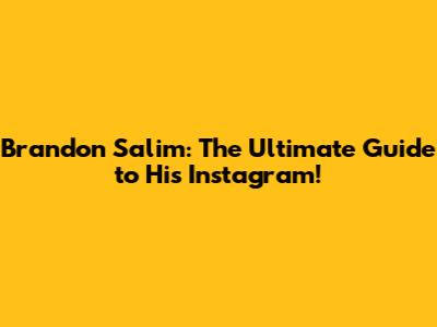 Brandon Salim: The Ultimate Guide To His Instagram!