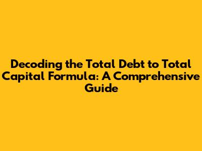 Decoding The Total Debt To Total Capital Formula