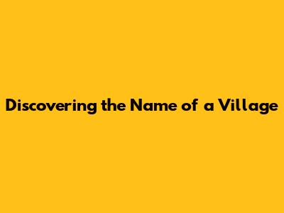 Discovering The Name Of A Village
