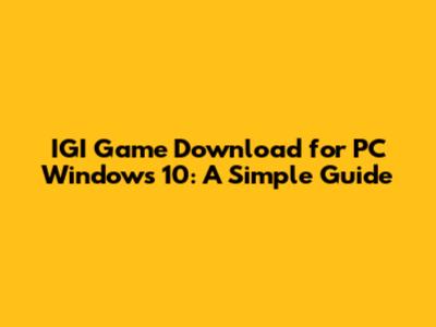 Download IGI Game For PC Windows 10: A Simple Guide