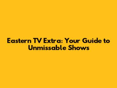 Eastern TV Extra: Your Guide To Unmissable Shows