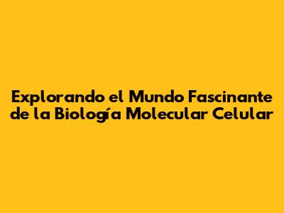 Explorando El Mundo Fascinante De La Biología Molecular Celular