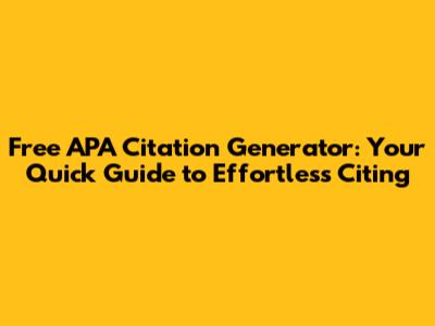 Free APA Citation Generator: Your Quick Guide
