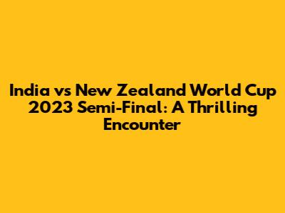 India Vs New Zealand World Cup 2023 Semi-Final: A Thrilling Encounter