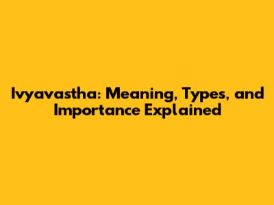 Ivyavastha: Meaning, Types, And Importance Explained