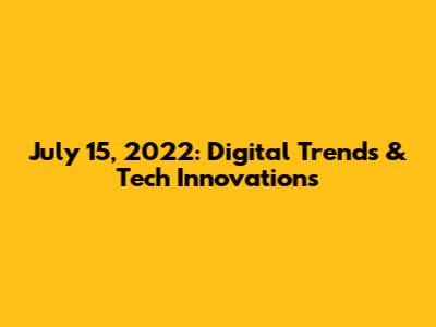 July 15, 2022: Digital Trends & Tech Innovations