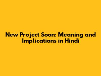 New Project Soon: Meaning And Implications In Hindi