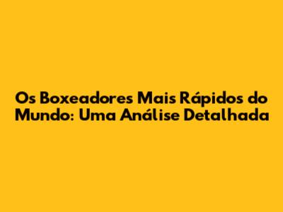 Os Boxeadores Mais Rápidos Do Mundo: Uma Análise Detalhada