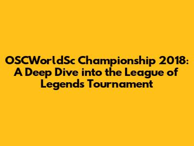 Hey guys! Let's rewind the clock and dive into the OSCWorldSc Championship 2018 for League of Legends (LOL). This was a pivotal year, packed with epic matches, underdog stories, and unforgettable moments that shaped the competitive scene. This article will break down everything from the key teams and players to the most shocking upsets and memorable highlights. So, grab your snacks, get comfortable, and let's journey back to the electrifying atmosphere of the 2018 championship!