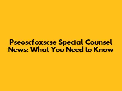 Pseoscfoxscse Special Counsel News: What You Need To Know