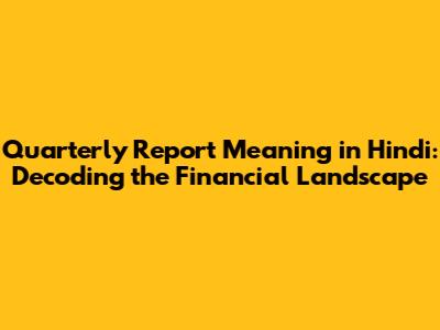 Quarterly Report In Hindi: Meaning, Importance & Examples