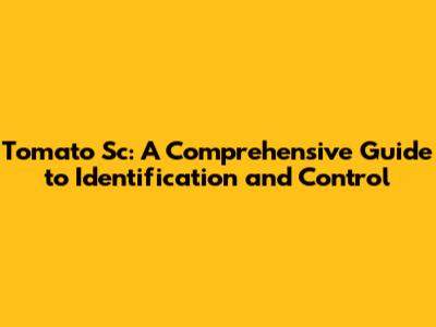 Tomato Sc: A Comprehensive Guide To Identification And Control