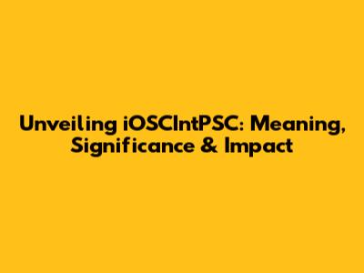 Unveiling IOSCIntPSC: Meaning, Significance & Impact